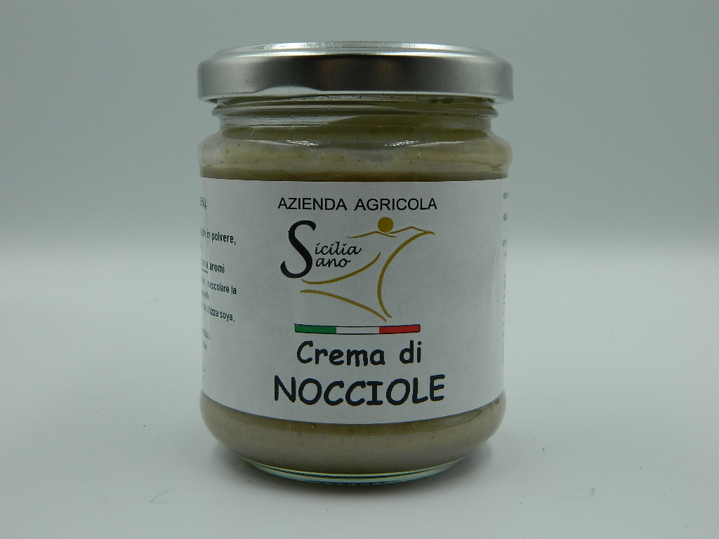 Ingredienti: Nocciola (35%), zucchero,olio vegetale (palma),lattosio,siero di latte in polvere, latte scremato in polvere Emulsionante :lecitina di soia, aromi Informazioni: Se si notasse affioramenti d'olio , mescolare la crema fino ad assoluta omogeneità. Prodotto in uno stabilimento che utilizza soya, uova e frutta in guscio. Conservare il prodotto temperatura ambiente (20/22°C) . Gluten free Confezione da 190 grammi