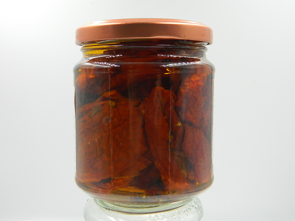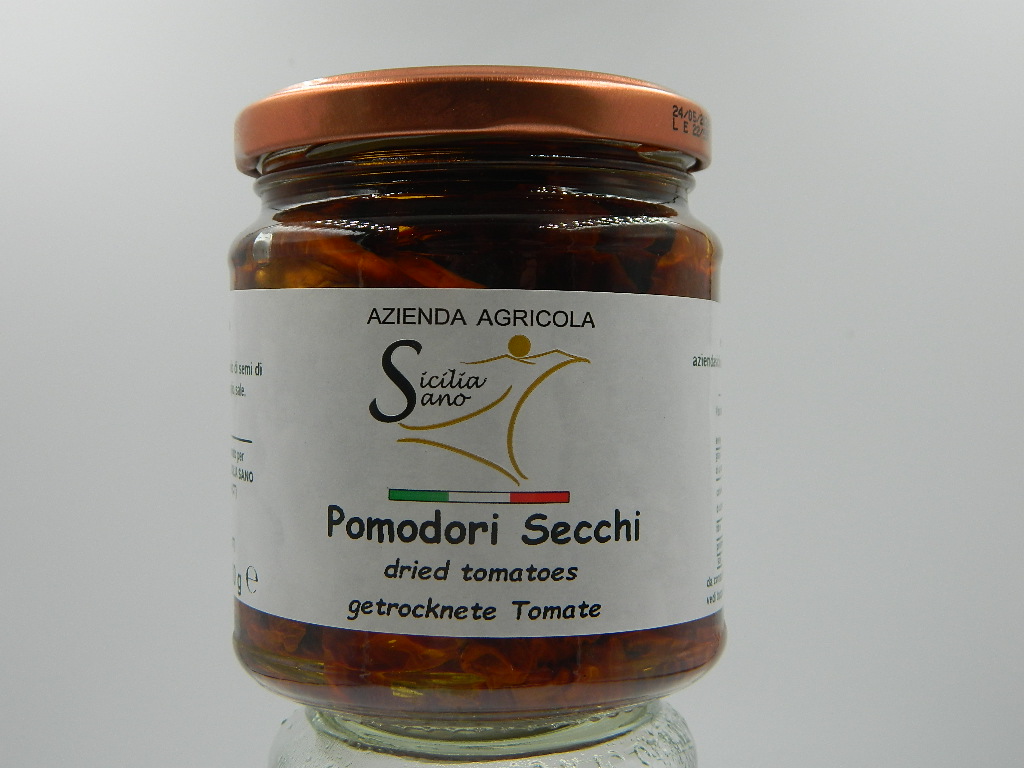 Pomodori secchi,olio di semi di girasole,basilico,aglio,sale.